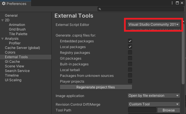 1. Edit - Preference - External Tools - External Script Editor에서 비주얼 스튜디오를 선택한다.