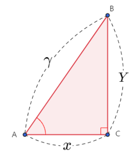 여기서 우리가 제일 먼저 알아야할 값은 빗변(t)의 길이이다. 일단 r값과 Φ을 이용하여 t를 구하게되면,