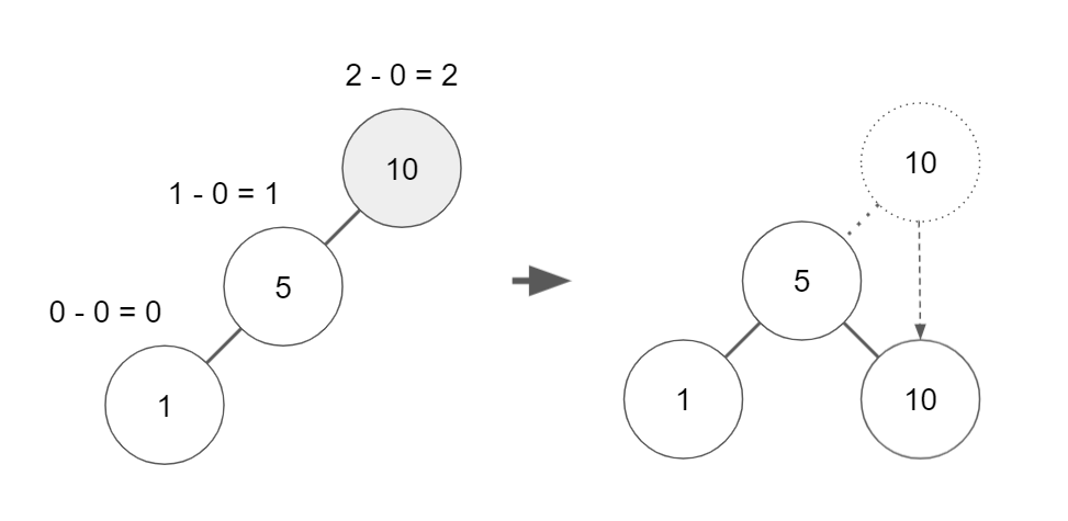 ※ 어떤 서브트리의 부모노드를 대상으로 균형 인수를 구한다. (절대값이 2차이가 나면 균형을 잡아준다.)