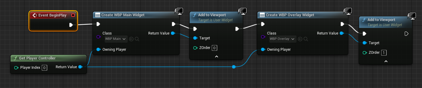- Main위젯에 하이어라키 구조로 위젯을 추가한 형태와 Add to viewport로 z order를 나눈 두가지 형태로 실험을 해보았다.