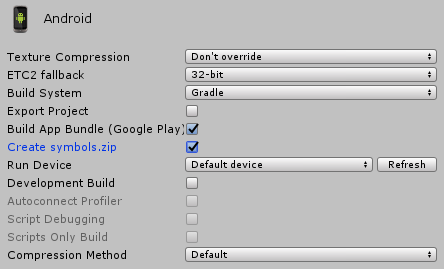 1. 먼저 Build setting 창에서 Create symbols.zip 버튼을 체크하여 빌드를 하면 aab파일과 symbol압축 파일이 추출됩니다.